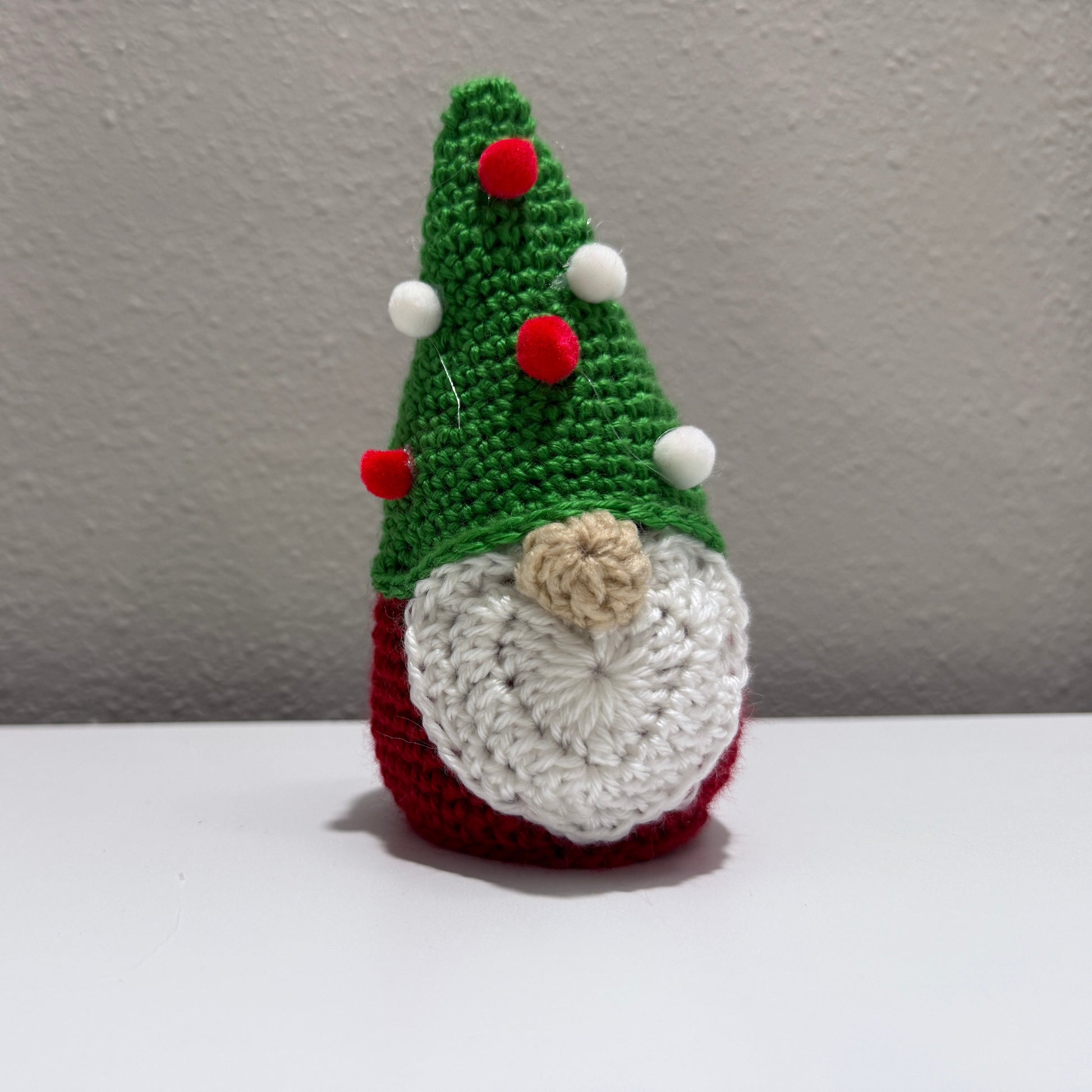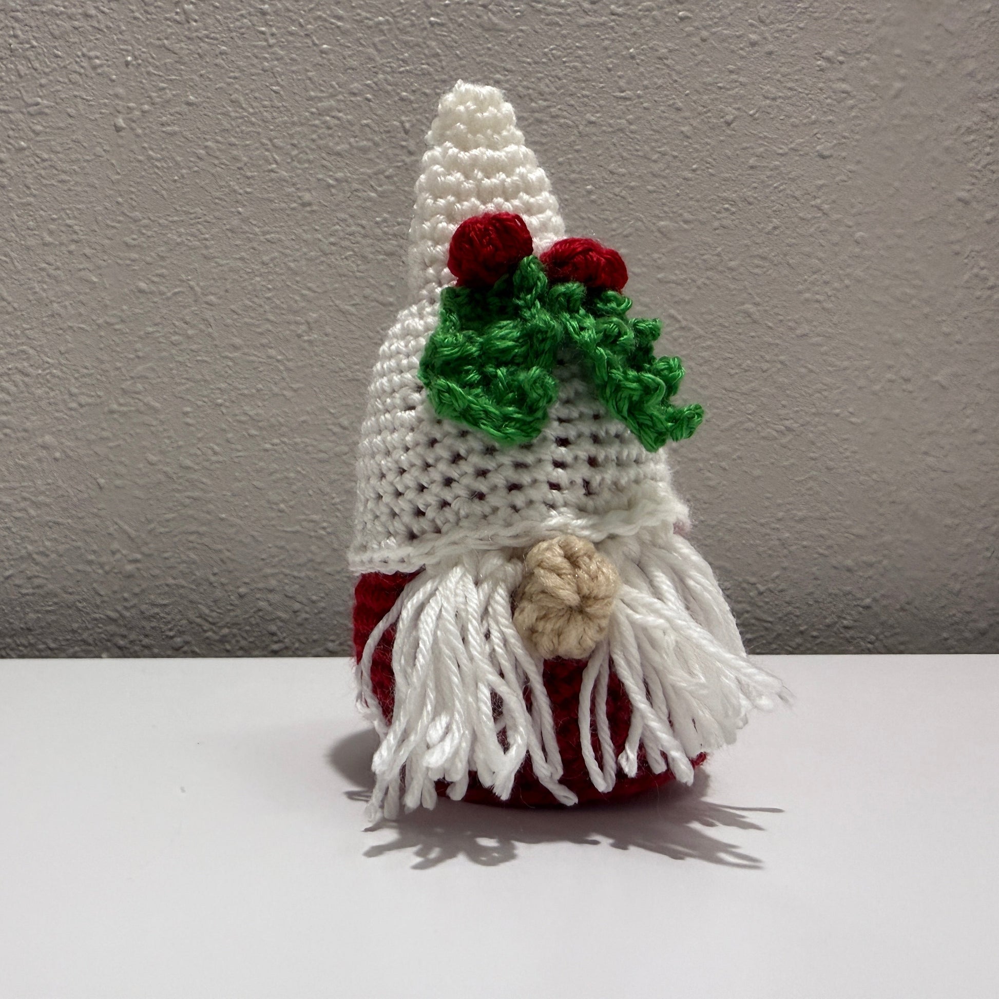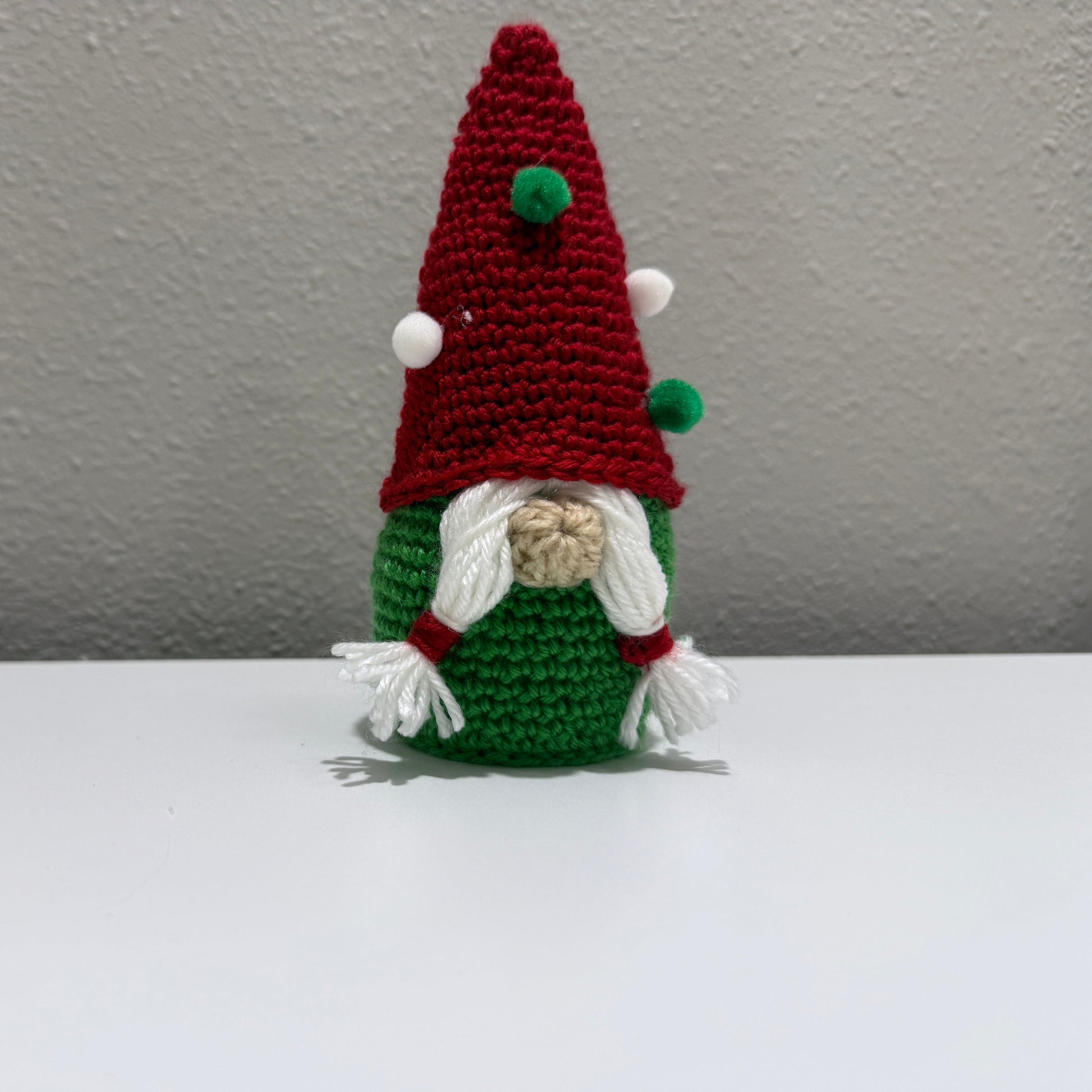 Add a touch of festive charm to any space with these handmade crochet gnome décor pieces. Standing approximately 6" tall, each gnome is carefully crafted by hand using soft, durable yarn and features detailed elements such as braided hair, a tall holiday hat, and thoughtfully chosen seasonal color accents. Ideal for mantels, shelves, or office desks, these gnomes make a unique gift for anyone who appreciates whimsical, handcrafted décor.